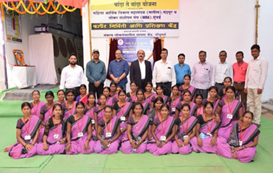 A carpet training programme for providing supplemental income for economic upliftment of underprivileged women in the rural areas of Chandrapur District, Maharashtra, is underway at four (04) talukas (i.e, Pombhurna, Mul, Saoli & Bramhapuri), where 02 nos. of Common Facility Centers (CFC) were set up for providing handmade carpet manufacturing techniques to rural women's in order to engage them in the production of handmade floor coverings as an alternate livelihood.